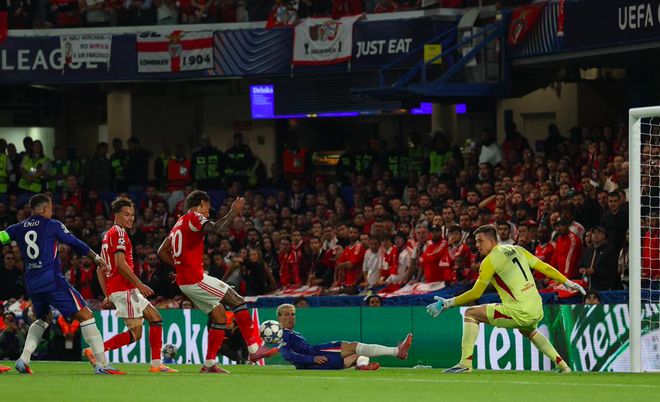 顶住了本菲卡的三板斧,切尔西的进攻开始活跃起来,马雷斯卡两翼齐飞的战术相当奏效,加纳乔在左路拼劲十足,内托的内切射门稍稍偏出。